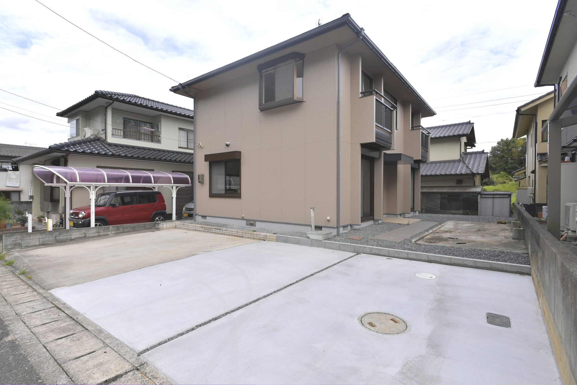 駐車スペースに関しても並列4台駐車可能と贅沢な広さを確保しております☆